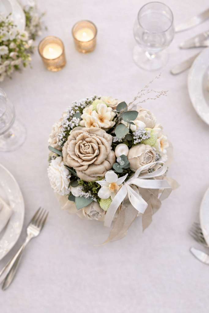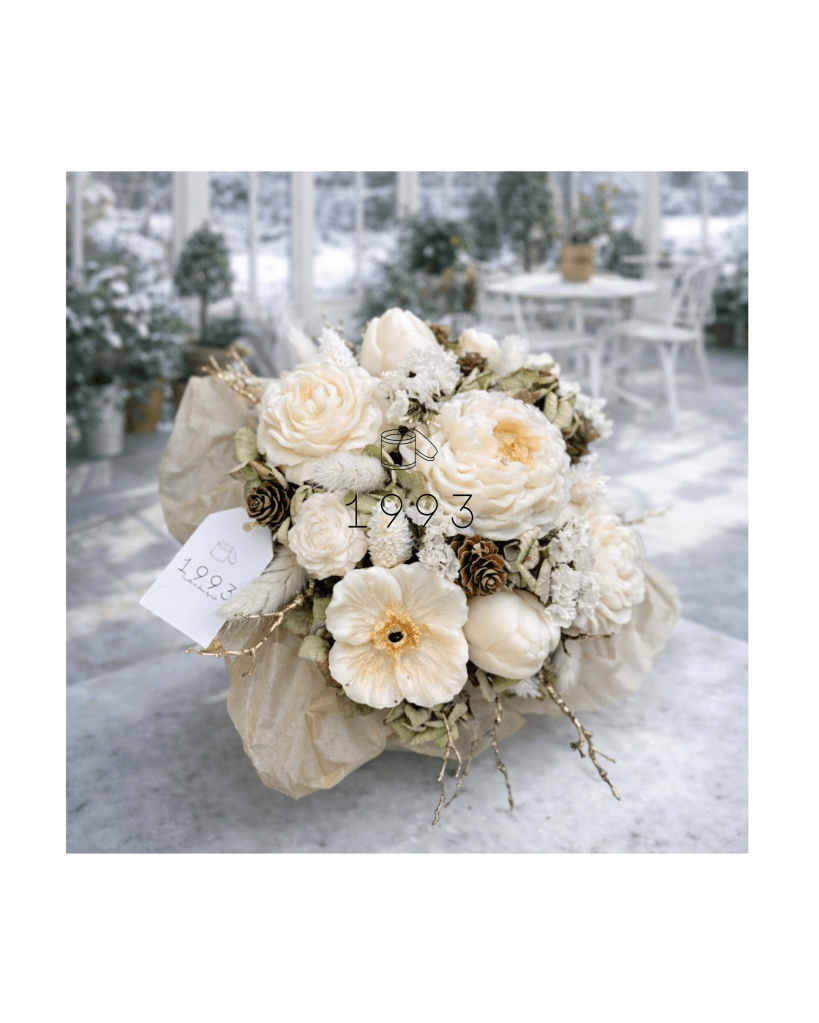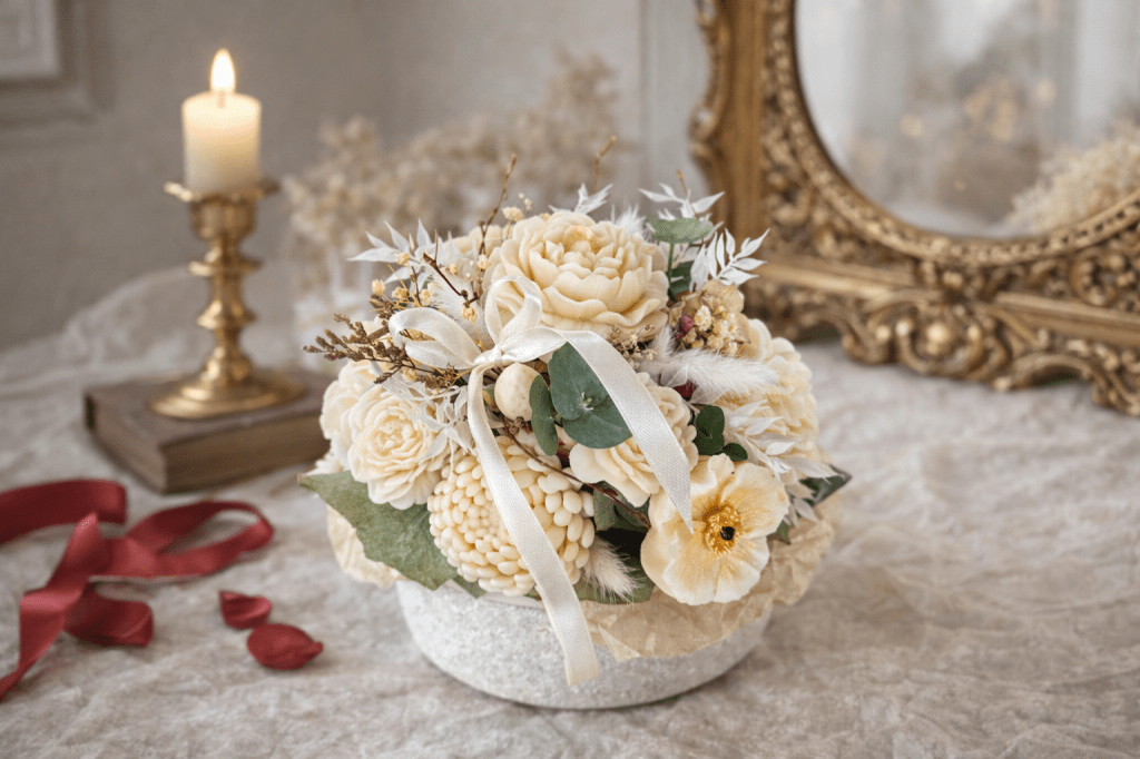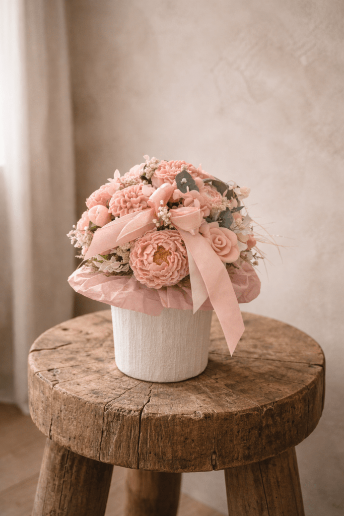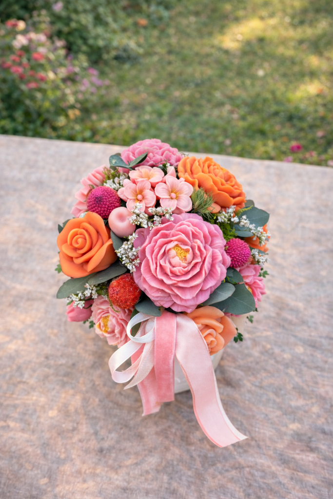 Bouquets décoratifs en cire végétale, réalisés à la main. Création personnalisables en couleurs et en fragrances.